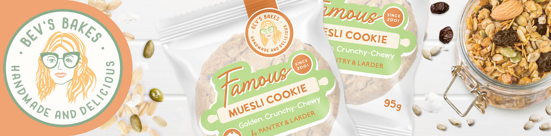 Bev’s Famous 95g Muesli Cookie has been a favourite in Cafes for over 20 years. A chunky, crunchy cookie with a chewy texture. A wholesome blend of rolled oats, seeds, coconut, almond meal and sultanas. Delicious for breakfast on the go, or any time of day!
